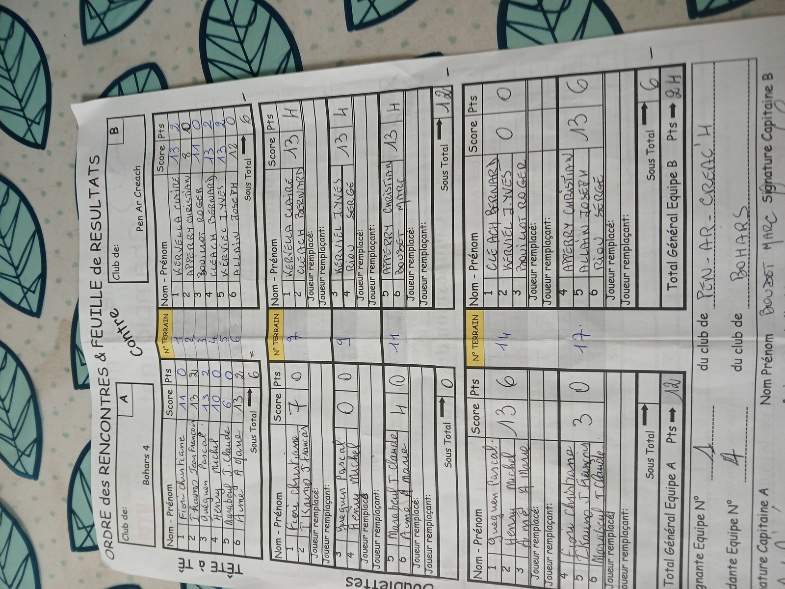 L'équipe vétérans de Pen Ar Créac'h a battu celle de bohars 4 sur le score de 24 à 12 . L'équipe composée de Claire, Bernard, Roger, Jo, Serge , Christian, Marc et Jean-Yves a remporté 3 tête à tête, les 3 doublettes et une triplette.